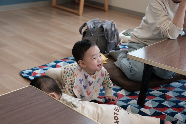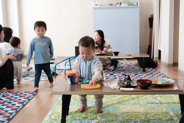 ちょっと見ない間にみんなキッズになってきてて、初おにぎりを顔で食べてくれたりいないいないばあしてくれたり。