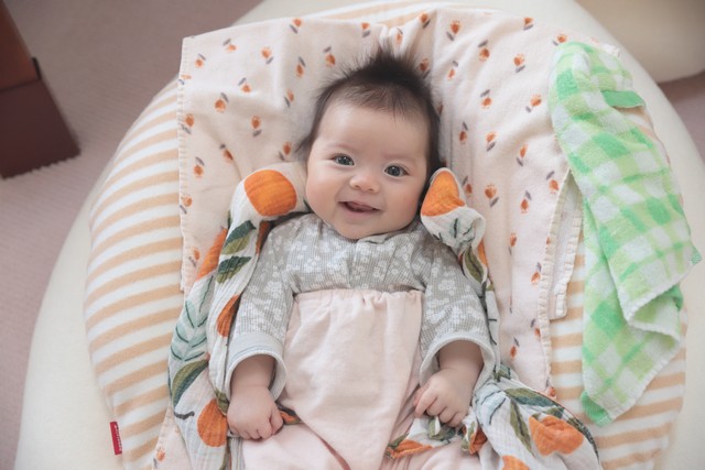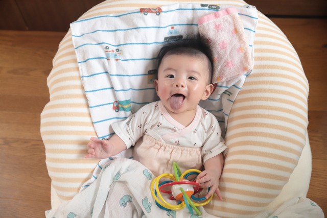 話しかけたらケラケラ笑ってくれて(笑われてるのかもしれない)ママびっくり(笑)