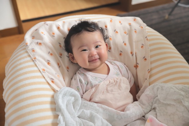 ママとパパがニコニコでたくさん話しかけているのが良くわかります。
