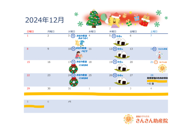 2023年から2024年の年末年始のお休みは下記の通りです。