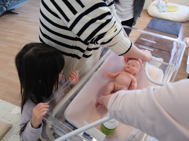 少人数制で、赤ちゃんのお世話もゆっくり練習できますよ。
