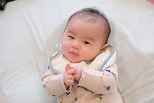 もうすぐ5カ月のじゅんちゃんは、ご機嫌なんだけどお家と違うことはわかってるみたいでなかなか上手に眠れません。