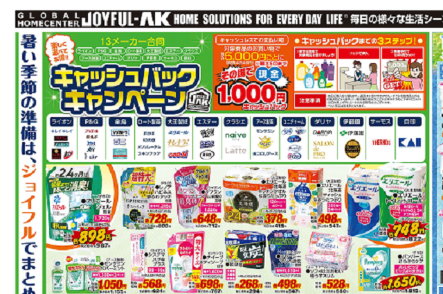 わたしと記録班が以前竹山高原温泉に向かう途中に立ち寄っていた❝ジョイフルエーケー❞では、不定期にキャッシュバックキャンペーンを開催しています。