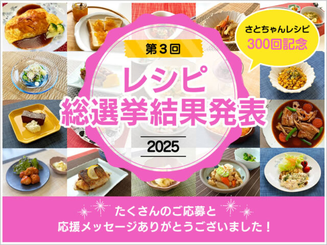 ついに、レシピ投稿300回を記念して行われた「第3回さとちゃんレシピ総選挙」の結果発表です!