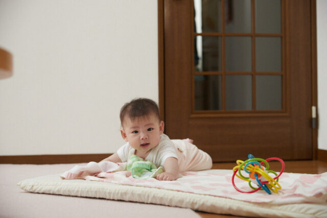 わたしたちと一緒のときは腹ばいの練習をしたり、運動熱心なふゆちゃん。