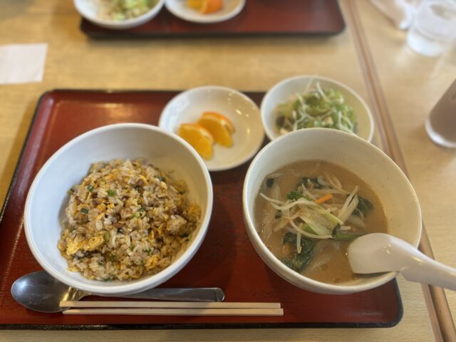コチラがわたしのオーダーした❝肉味噌入りチャーハンと胡麻豆腐ラーメン❞