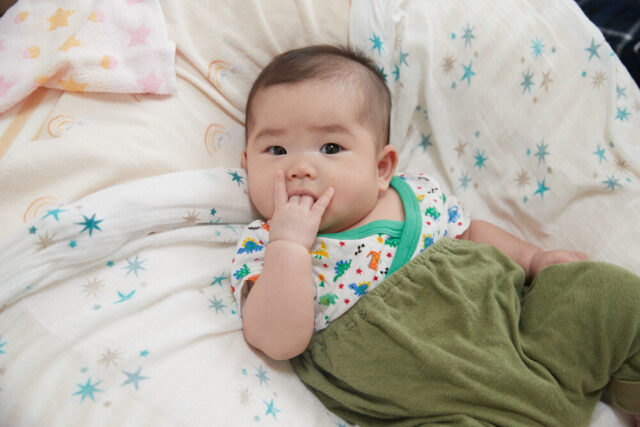 指しゃぶりが中指と薬指の2本で何とも言えず可愛い。