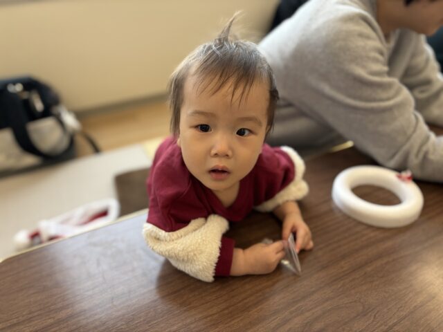 ママと一緒にクリスマスリースづくりに参加してましたよ。