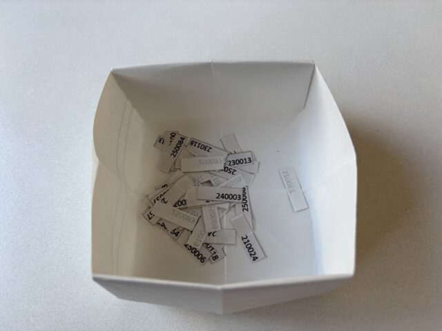 まずは、ご応募いただいた方のリストをもとに、抽選リストを作ります。