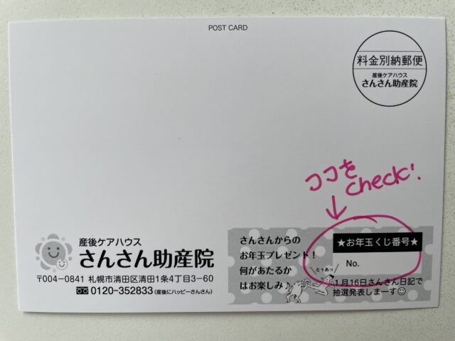 さんさん助産院では毎年クリスマス&ニューイヤーカードをお送りしています。