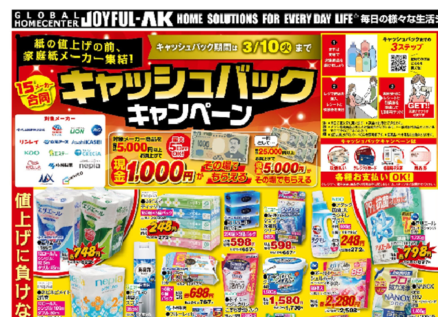わたしと記録班が以前通っていた温泉に向かう途中に立ち寄っていた❝ジョイフルエーケー❞さまでは、不定期にキャッシュバックキャンペーンを開催しています。