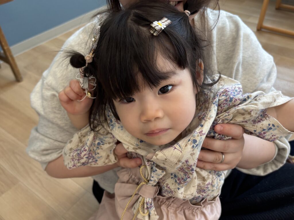 毎年桃の節句ではママたちにオリジナルヘアピンを作ってもらっているので、手作りヘアピンをつけた可愛い参加メンバーをご紹介しましょう♪