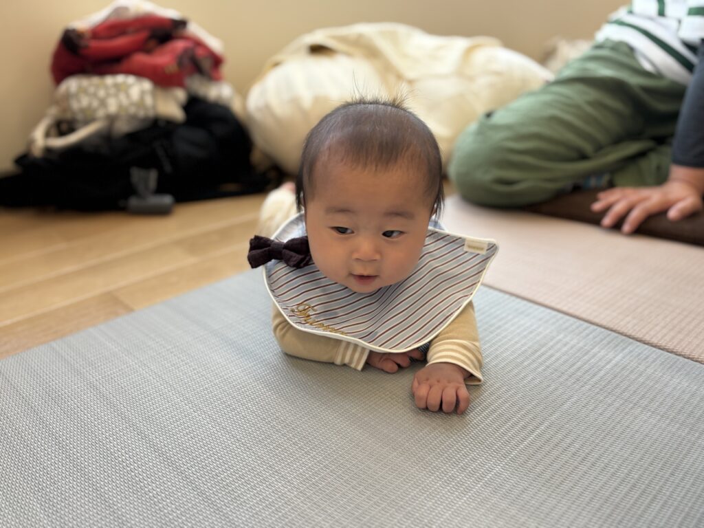 寝返りもできるようになってドヤ顔、見せてくれました。