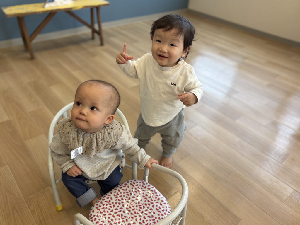 もんめの産後ケアで偶然再会したお友だちのさっくんと一緒に来てくれました。