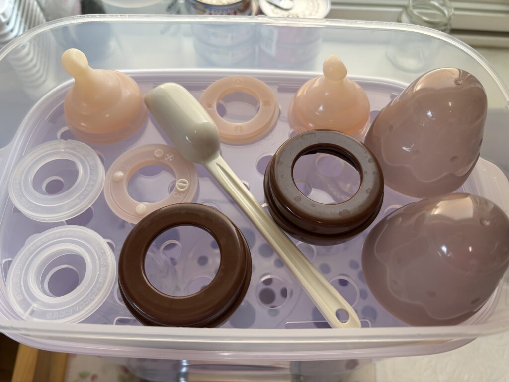 さんさんでは、必要な方には哺乳びんを貸し出ししているのですが、菌の繁殖を防ぐには乾燥がとても大切!