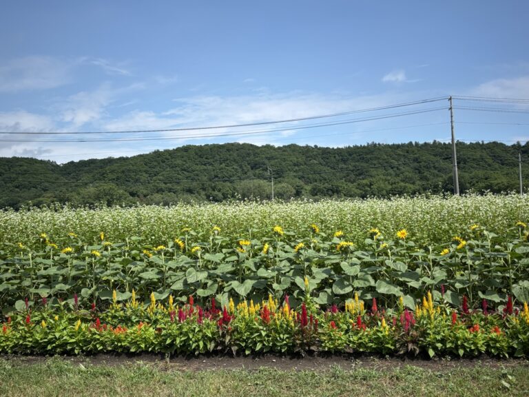 蕎麦の花(ひまわりの奥の白い花)が満開でした~♪