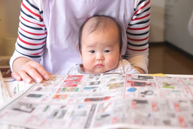 一緒に今日の特売品を探してもらってます♪