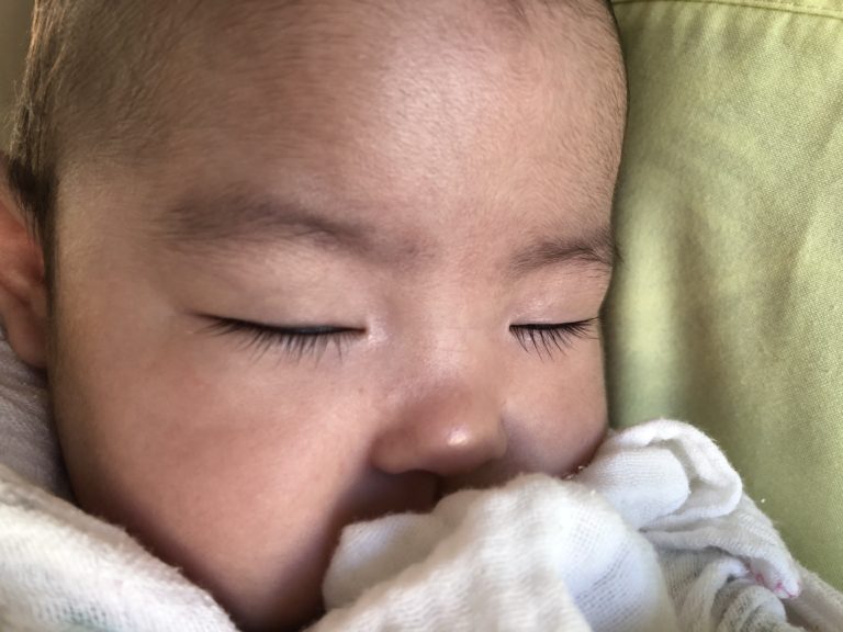 眠りに落ちた瞬間のお顔・・。このドアップに耐えられる肌のきめ細かさがうらやまし~(笑)