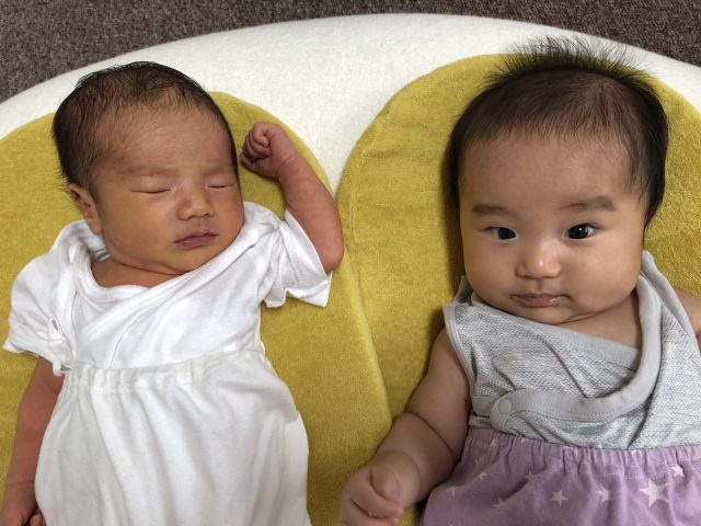 生後8日目のみっくん(写真左)と生後3カ月のそうくん(写真右)は同級生♪