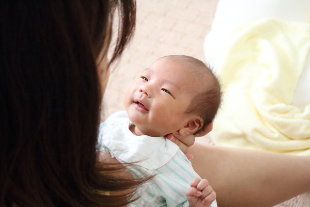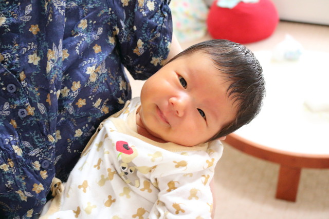 ママに抱っこしてもらってゴキゲン♪