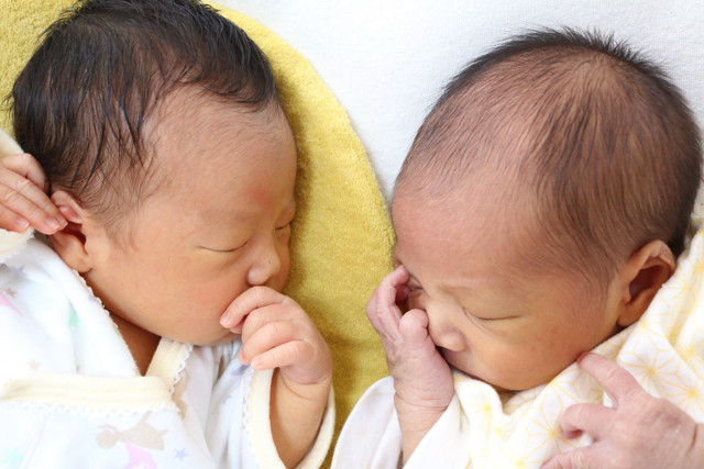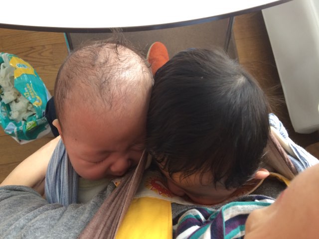 抱っこ紐の中でお昼寝中の2人♪