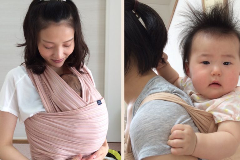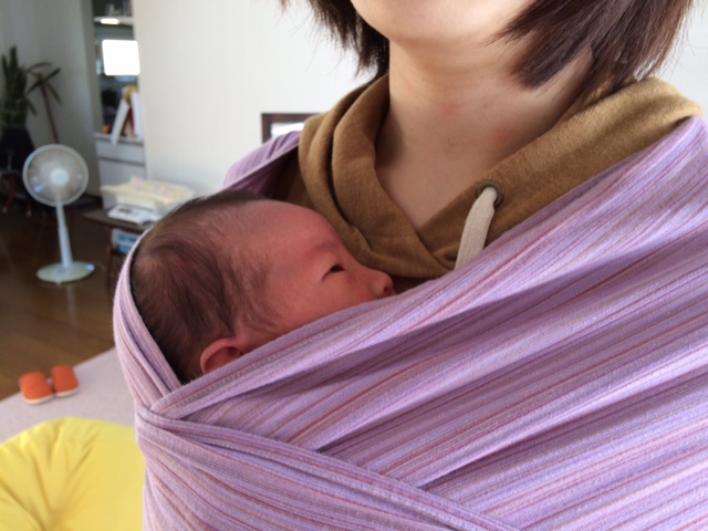へこおびに包まれてお休み中のじゅんくんとタートリーノNEOで初めてのおんぶにご機嫌のあやちゃんです♪