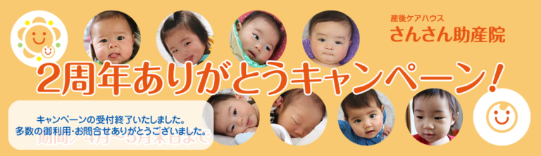 さんさん助産院開院2周年記念キャンペーンのお知らせ