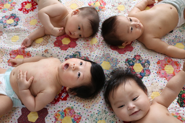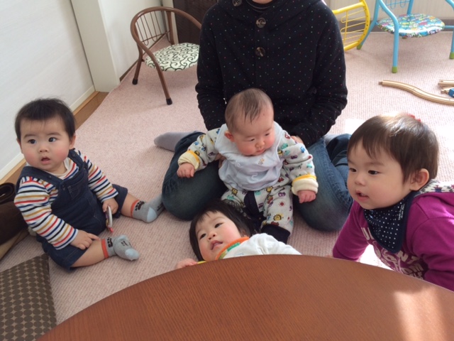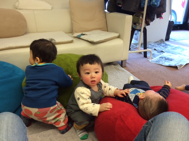 左から、たっくん、こうくん、はるくん。寝てる子は、むっち♪
