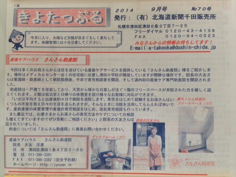 先日、きよったっぷるでさんさん助産院を掲