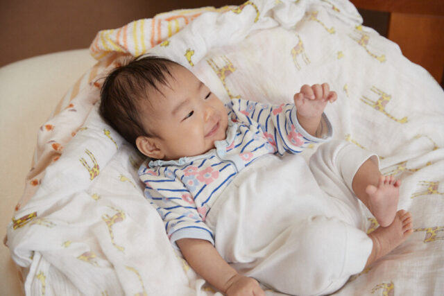 前より大きくなって、ももひきも新生児→Sサイズにアップ⤴⤴