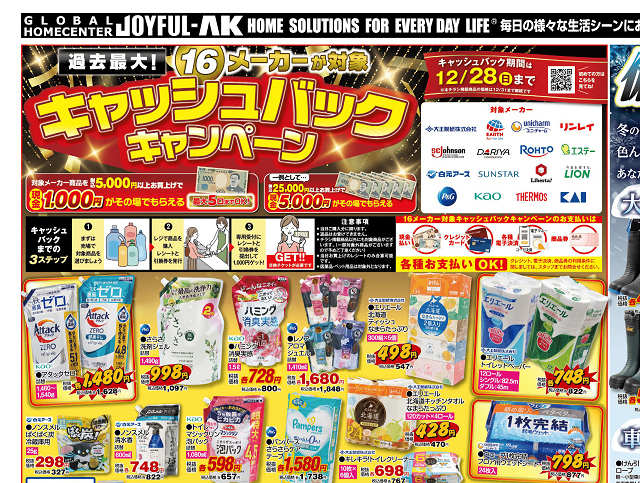 わたしと記録班が以前竹山高原温泉に向かう途中に立ち寄っていた❝ジョイフルエーケー❞さまでは、不定期にキャッシュバックキャンペーンを開催しています。