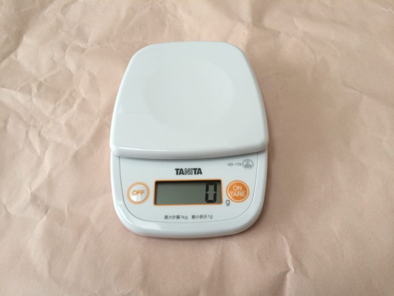 中に詰める砂を計りましょう。使用するの抗菌砂を利用します。これは砂場遊びに使われるものですね。