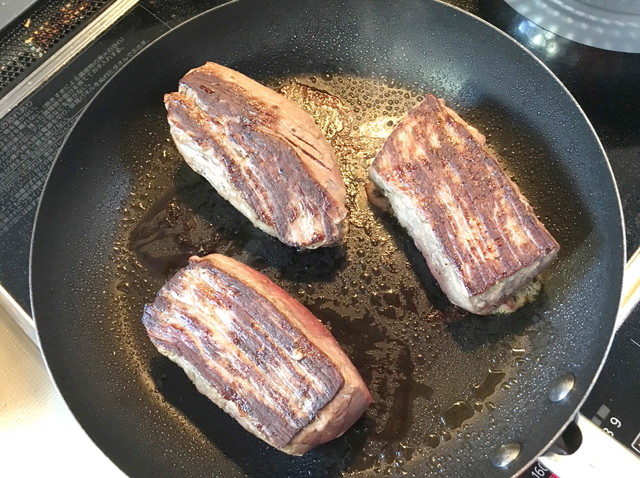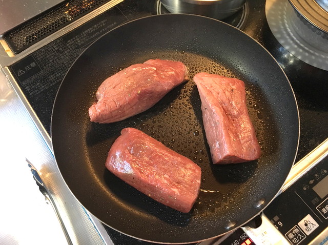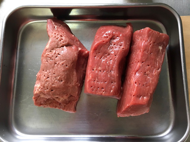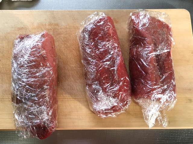 お肉は焼く1時間位前に出して必ず常温で焼きます。