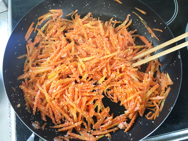 今日のレシピは人参のたらこ炒め。