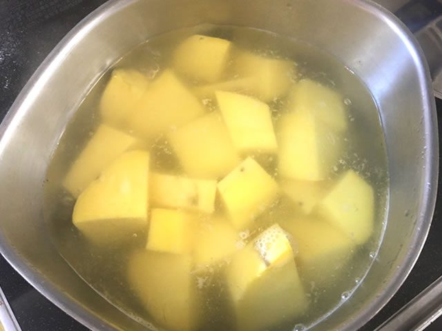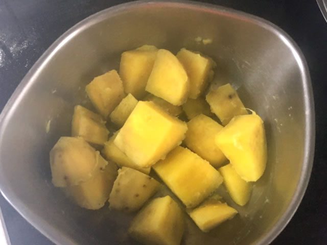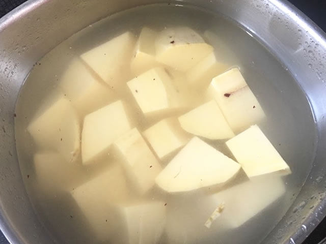もう一度、お鍋にサツマイモと水を入れて柔らかくなるまで茹でます。