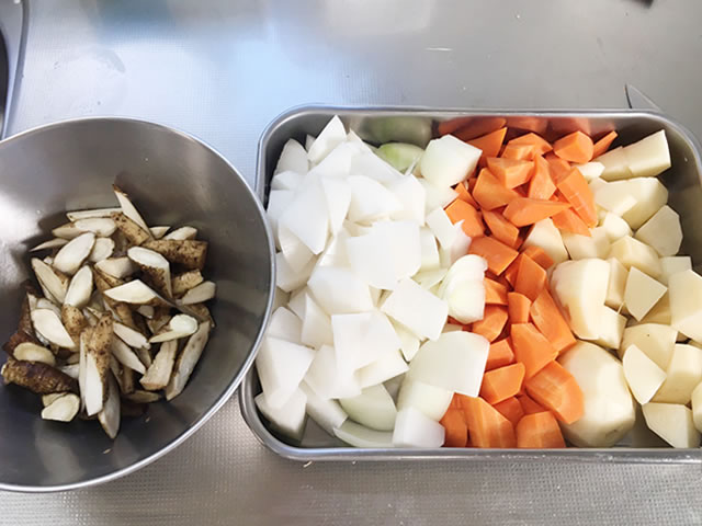 野菜もひと口大くらいに切り揃えます。