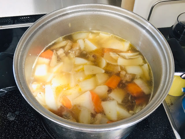 灰汁をとったら蓋をして中火(IHなら4)で10分~15分ほど煮ます。