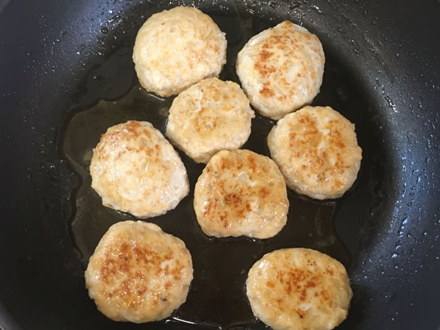 鶏ひき肉と豆腐を混ぜて丸めて焼くだけ♪