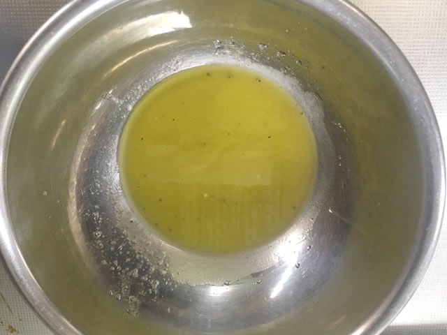 合わせ酢、オリーブ油、胡椒でドレッシングを作っておきましょう。