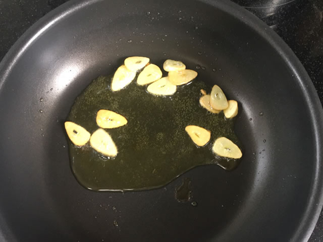 フライパンに調味料(B)を入れて中火にかけ、にんにくが薄く色づいたらお好みで胡椒を加えます。