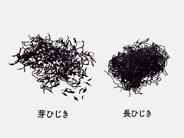 ひじきには、茎の歯ごたえのある部分が「長ひじき」、先端の芽や小枝の柔らかい部分が「芽ひじき」があり、それぞれ好みや調理法によって使い分けることが多いです。