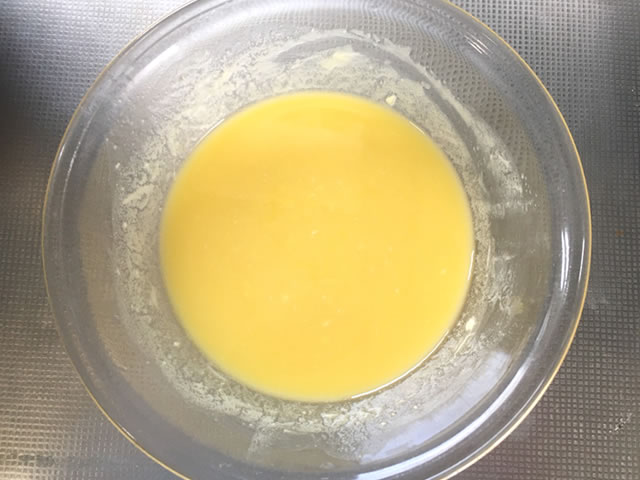 バターとチョコレートを耐熱容器に入れ、レンジ600wで1分間溶かして混ぜます。