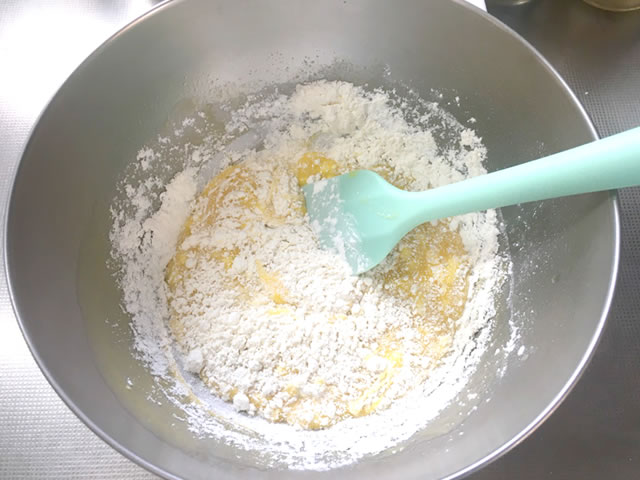 ホットケーキミックスを入れサックリと混ぜ合わせます。