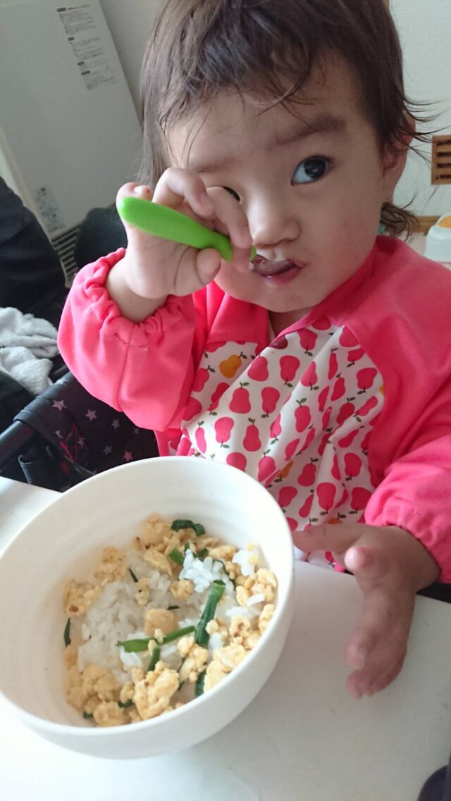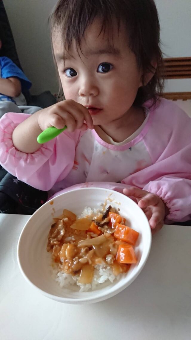 なすのみそ炒めは、今まで食べなかったさっちゃんが、手づかみでパクパク食べてくれたそうです。