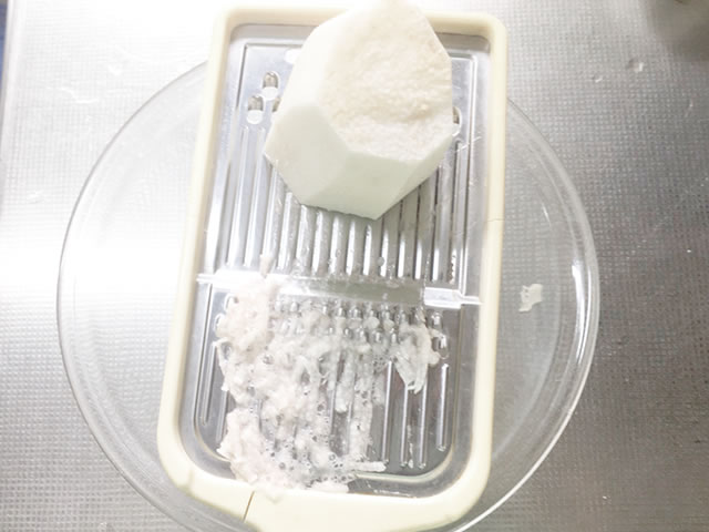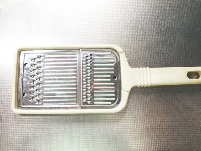 長芋は皮をむいたら、上の写真のようなスライサー千切り用で簡単に!