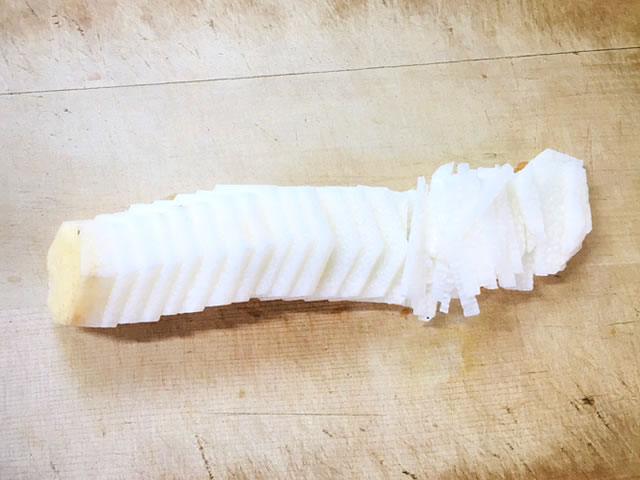スライサーが無い場合は、薄い輪切りにして…