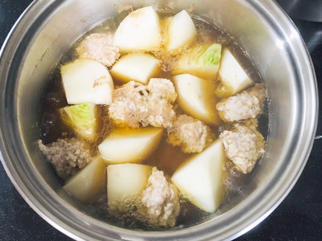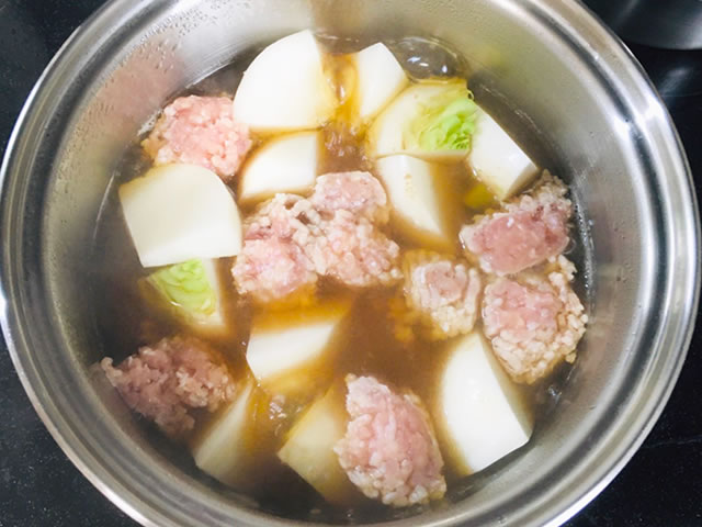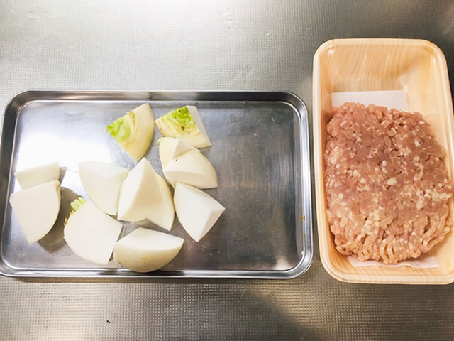カットしたカブと鶏ひき肉を煮るだけ!