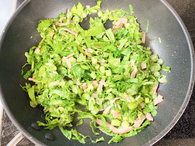 セロリの葉を入れて炒めます。