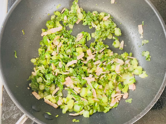 セロリの葉のベーコン炒め