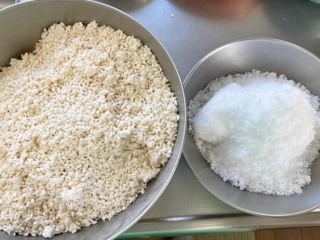 圧力鍋で黒豆を煮ている間に、米麹と塩の準備をしましょう。